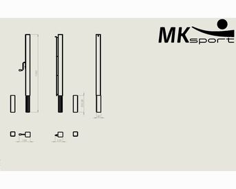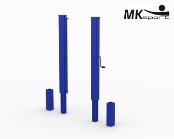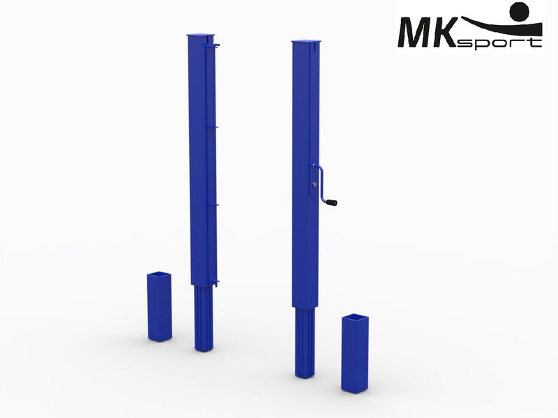 Конструкция состоит из непосредственно самих стоек и бетонируемых стаканов для их установки, благодаря этому монтаж оборудования занимает считанные минуты. Для предотвращения попадания грунта и мусора внутрь конструкции стаканы оснащены крышками. Механизм натяжения сетки находится внутри стойки, что обеспечивает его защиту от повреждений и существенно увеличивает срок службы оборудования. Стойки обработаны антикоррозийным цинкосодержащим грунтом и покрыты полимерной порошковой краской, устойчивой к абразивному стиранию и неблагоприятному воздействию факторов внешней среды.